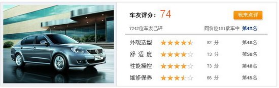 在我們騰訊口碑排行榜上,朗逸的綜合評(píng)分比科魯茲稍遜一籌,不過(guò)差距并不算大,而且從單獨(dú)項(xiàng)目的打分來(lái)看,大家對(duì)于朗逸的外形設(shè)計(jì)和舒適度還是給與了非常高的評(píng)價(jià),74分的綜合成績(jī)也屬于中等偏上的水平。