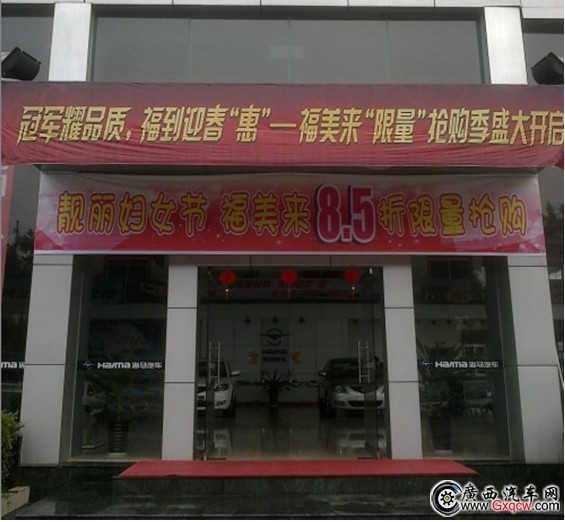 編輯從海馬?4S店了解到:3月8日三八節(jié)當(dāng)天,海馬?4S店提供福美來(lái)專場(chǎng)現(xiàn)已整裝待發(fā),為廣大女同胞們獻(xiàn)禮福美來(lái)尊享8.5折優(yōu)惠,最后剩8臺(tái),到店還有精美禮品送出。數(shù)量有限歡迎搶購(gòu)!3月9日-11日在東興市文化廣場(chǎng)車展A11海馬展位也能享受福美來(lái)8.5折優(yōu)惠,詳詢:4922218,4885118 。