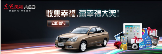 為迎接?xùn)|風(fēng)風(fēng)神A60上市,東風(fēng)風(fēng)神南寧和順專營店 開展“旗艦風(fēng)范,幸福座駕”東風(fēng)風(fēng)神A60搶先預(yù)訂抽獎(jiǎng)活動(dòng),凡是在2012年3月1日至3月27日,參與東風(fēng)風(fēng)神A60收集幸;顒(dòng),即有機(jī)會(huì)贏得Iphone、Ipad、數(shù)碼相機(jī)等多重好禮!