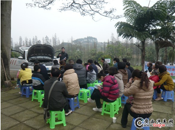 在隨后的愛車課堂,車主朋友們圍坐在上海大眾廣西眾源的服務車前,傾聽著上海大眾廣西眾源售后部的技師覃怡斌就近期車主所關心的油品質量及使用問題和車輛使用方面相關常識,車主們也紛紛提問,在車主與技師之間的一問一答中,車主朋友們也從中得到了收獲。