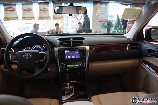 第七代凱美瑞鮮明的X型前臉設(shè)計(jì),有劍拔弩張之氣勢(shì),獨(dú)特的黑色網(wǎng)絡(luò)中網(wǎng)格柵,上翹的鍍珞飾條,令加大設(shè)計(jì)的豐田徽標(biāo)立體感強(qiáng)烈。深色內(nèi)飾依然經(jīng)典,桃木飾板上反射著鋼琴面板一般锃亮的光澤;簡(jiǎn)潔的T字型操控臺(tái),輔以立體弧形木紋飾板和鍍鉻條,營(yíng)造出高貴大氣的車(chē)廂氛圍。