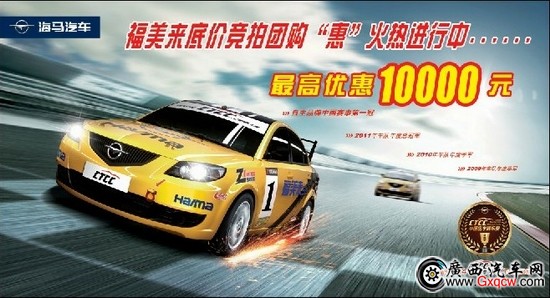 海馬福美來(lái)競(jìng)拍團(tuán)購(gòu)惠活動(dòng),是海馬?4S店為感謝廣大消費(fèi)者支持而舉行的一系列主題回饋活動(dòng),此次福美來(lái)競(jìng)拍團(tuán)購(gòu)的火熱開(kāi)展,給消費(fèi)者貼心的購(gòu)車(chē)優(yōu)惠。有理由相信,福美來(lái)三代這款高品質(zhì)家轎將繼續(xù)以最佳中級(jí)車(chē)的姿態(tài)熱銷(xiāo)終端,必定會(huì)給更多的消費(fèi)者送去最完美的價(jià)值體驗(yàn)和最舒適的汽車(chē)生活。