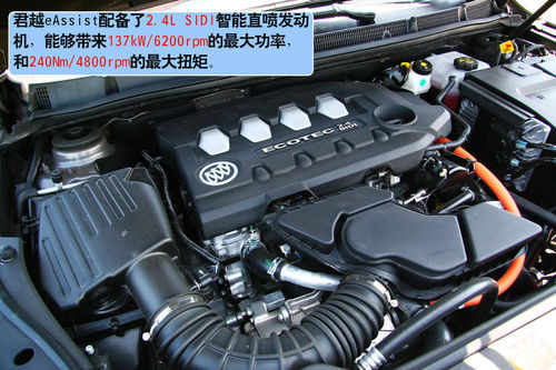 君越eAssist將2.4L SIDI智能直噴發(fā)動機與eAssist智能混合動力技術(shù)完美結(jié)合,包括專用6速手自一體變速箱、15kW電動機、115V高性能鋰電池、智能降阻進氣格柵、底盤空氣動力學優(yōu)化、低滾阻綠色輪胎等亮點設計。
