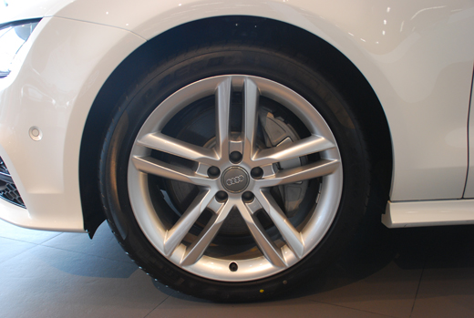 A7 2.8 FSI進取型和A7 3.0 TFSI 舒適型都配備255/45 R18大尺寸寬胎,并配備18寸的7輻鋁合金輪轂,而A7 3.0 TFSI 豪華型則配備規(guī)格更高的255/40 R19輪胎,除了19寸10輻輪胎是標配外,還有兩種輪轂可供選擇。