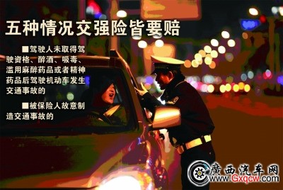 陳先生介紹說,首先,無證駕駛、醉駕、吸毒、濫用麻醉藥品或精神藥品后駕車出險,故意制造交通事故等五種情況,在商業(yè)車險都屬于免責范圍(迄今依然不賠)。這就導致了保險公司人士在交強險實施最初形成固有印象:交強險也不賠。