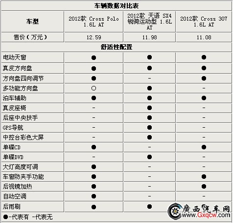 舒適性配置-Cross 307配置較低 Cross Polo和天語(yǔ)SX4銳騎版各有優(yōu)勢(shì)