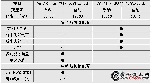 1.6L高配車型種,兩款車價格差距為6900元,還是世嘉要更貴一些,不過兩款車在配置方面選擇了不同的趨向,世嘉更注重一些內(nèi)部的方便配置,而標(biāo)致308則更看重安全配置,新世嘉的自動分區(qū)空調(diào)要比標(biāo)致308的手動空調(diào)更顯檔次。