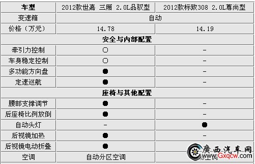 2.0L的頂配車型與1.6L的頂配車型一樣,只是新世嘉可以選裝牽引力控制和車身穩(wěn)定系統(tǒng),而標(biāo)致308則比世嘉多出自動頭燈這個配置,另外兩款高配車型均裝備了GPS導(dǎo)航系統(tǒng),價差要比1.6L的頂配車型少一些為5900元。