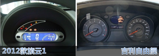 儀表盤方面,2012款旗云1采用數(shù)字顯示儀表,在行車中對(duì)信息的掌握可以一目了然,并且有瞬時(shí)油耗顯示、保養(yǎng)提示等多項(xiàng)便捷功能;而自由艦則仍然使用指針式儀表盤,整體感覺(jué)比較單一,當(dāng)然,對(duì)一些看慣了指針儀表的老司機(jī)朋友,可能比較有吸引力。