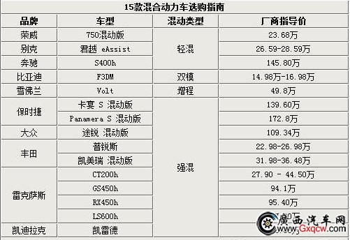 目前在國(guó)內(nèi)市場(chǎng)上銷售的混動(dòng)車型可粗略分為弱混、輕混以及強(qiáng)混三種類型,其中弱混僅指裝備啟停系統(tǒng)的車型除,而輕混和強(qiáng)混則為真正意義上的混合動(dòng)力車型。此外除這三種模式,還有采用雙模混動(dòng)的比亞迪F3DM以及采用增程式混合動(dòng)力系統(tǒng)的雪佛蘭Volt。
