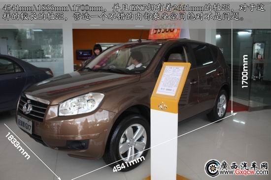 不過說一千道一萬,GX7和RAV4也只是神韻上的相似,細節(jié)之處可能沒有一處相同,早在2010年的廣州車展時的GX7可以用不修邊幅來形容,碩大的大燈沒有一絲立體感可言,而如今,在熏黑大燈融入之后,GX7終于展現(xiàn)出了時尚的姿態(tài)。只不過,目前的GX7還是和帝豪EX7 太過相像,以致于取下車標都難以具體分辨。