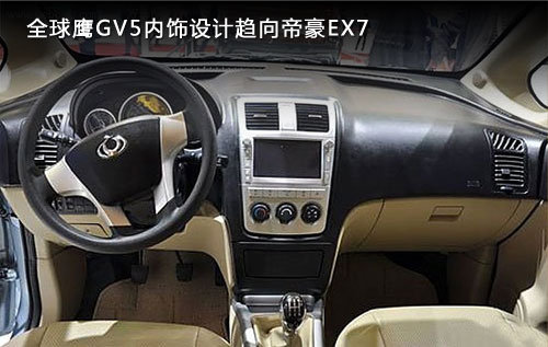 全球鷹GV5采用飛航式的前臉設(shè)計(jì),菱形前大燈向外延伸,呈現(xiàn)特有的設(shè)計(jì)。另外,GV5的前格柵與前大燈采用一體化式設(shè)計(jì),給人的視覺效果更加大氣。內(nèi)飾設(shè)計(jì)整體風(fēng)格趨向于帝豪EX7,雖然兩者并非同期設(shè)計(jì)的車型,但是內(nèi)飾方面有一定的延續(xù)性。