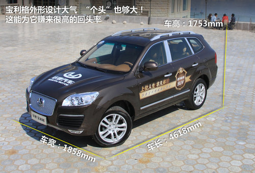 華泰寶利格是借鑒了老款保時(shí)捷卡宴的設(shè)計(jì),并融入了其品牌的風(fēng)格,如果用幾個(gè)詞來(lái)形容就是:大氣、優(yōu)雅、時(shí)尚。但是這樣的設(shè)計(jì)您能不能接受,那就是“仁者見(jiàn)仁智者見(jiàn)智了”但其在路上的回頭率還是很高的。寶利格的車身尺寸為:4618mm×1858mm×1753mm,軸距為2620mm。雖然在參數(shù)上沒(méi)有什么亮點(diǎn),但是其視覺(jué)效果與后排空間絕對(duì)是要超過(guò)這些枯燥的數(shù)字帶給你的感覺(jué)。