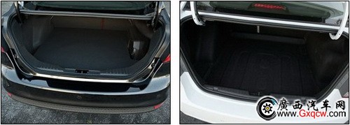 這一小節(jié)的最后我們來簡單提一下后備箱,兩款車的后備箱內(nèi)部都比較平整,不過科魯茲的更大一些,新?怂沟暮髠湎淇臻g被備胎和低音炮擠占了不少。其實這里沒什么大的影響,夠用就好,吹毛求疵地去丈量數(shù)據(jù)的事兒這里就不做了。