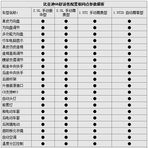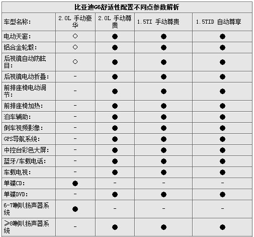 舒適性配置方面,它可以提供的配置包括智能無鑰匙進入系統(tǒng)、發(fā)動機一鍵啟動、自動大燈、行車電腦、多功能方向盤、藍牙免提通話系統(tǒng)、駕駛員座椅8向電動調(diào)節(jié)、打孔真皮座椅、座椅加熱、自動防炫目后視鏡、GPS導航等配置。就整體配置水平來看,比亞迪G6位居自主中級車前列。