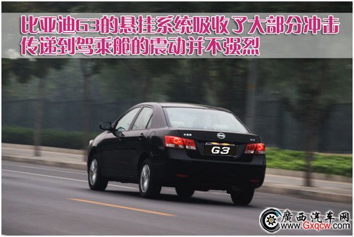 本次試駕的比亞迪G3依然搭載三菱的4G15S發(fā)動(dòng)機(jī),性能穩(wěn)定,而且經(jīng)濟(jì)性非常優(yōu)秀。比亞迪G3雖然比F3的尺寸更大,但整車重量卻有所減輕,使比亞迪G3的初段加速非常迅猛,不過這款車的油門初段的輸出以及油門踏板的順暢性比較一般。隨著車速的提高,油門的反應(yīng)越來(lái)越直接,我們可以很明顯的感受到速度的提升。但對(duì)于一款1.5L車型來(lái)說(shuō),比亞迪G3的車速最好保持在110km/h以下,比較適合二、三級(jí)城市道路駕駛。
