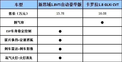 從配置角度來看,16萬元區(qū)間的對比車型,新思域價格更低,配置更為豐富,新思域相比卡羅拉多出了車身穩(wěn)定控制系統(tǒng)、換擋撥片、定速巡航、倒車影像、氙氣大燈等多項(xiàng)實(shí)用配置。