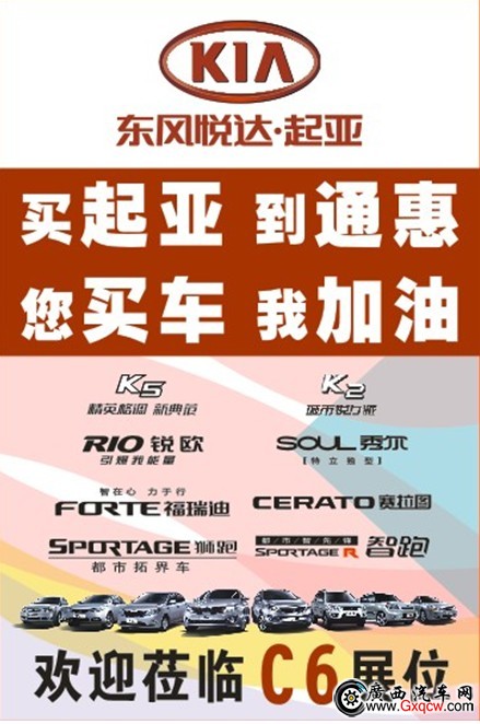 安吉車展將于4月12-5日在南寧市安吉大道41號(hào)廣西汽車交易市場舉行。4月12日(星期四)、4月14日(星期六)東風(fēng)悅達(dá)起亞廣西通惠4S店在車展C6展位進(jìn)行全車系大優(yōu)惠,同時(shí)現(xiàn)場有“您買車,我加油”活動(dòng),東風(fēng)悅達(dá)起亞,您值得擁有的愛車,更多驚喜敬請(qǐng)4月12日、14日蒞臨C6展位。