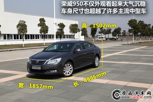 由于車型定位的關(guān)系,榮威950不僅外觀造型看起來大氣沉穩(wěn),車身尺寸方面也超越了許多主流中型車,長、寬、高分別達(dá)到了4996毫米、1857毫米和1502毫米,而2837毫米的軸距跟同級對手相比也優(yōu)勢明顯。