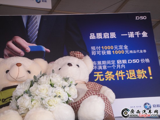 (廣西汽車網(wǎng) 訊)近日,編輯從南寧弘啟汽車銷售服務(wù)有限公司了解到,目前店內(nèi)啟辰D50有展車到店,需預(yù)訂,預(yù)計(jì)一個月左右能夠提車,訂金1000元,4月22日之前交1000元訂金訂車,即獲1000元精品代金券,在車展期間定啟辰D50,價格不滿意一個月內(nèi)可無條件退款,現(xiàn)在下訂,預(yù)計(jì)一個月左右能提到車。感興趣的朋友可致電或到店詳細(xì)了解。下面請看廣西汽車網(wǎng)編輯拍自安吉車交會的照片: