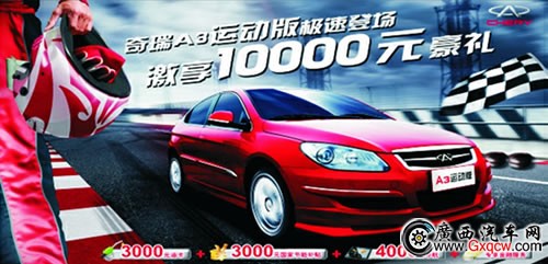 廣西鑫廣達(dá)旗瑞汽車(chē)銷(xiāo)售服務(wù)有限公司攜手奇瑞全系車(chē)型參加4月28日—5月1日在南寧會(huì)展中心舉行的《北部灣(南寧)第八屆汽車(chē)展》。屆時(shí)奇瑞展位會(huì)舉行奇瑞A3(CVT)自動(dòng)擋與瑞麒G3聯(lián)袂上市、限時(shí)搶購(gòu)、看車(chē)有驚喜、購(gòu)車(chē)有大禮等豐富多樣的活動(dòng),傳說(shuō)中的A3CVT車(chē)型更是閃亮登場(chǎng),想一睹真容的朋友們要來(lái)哦…………