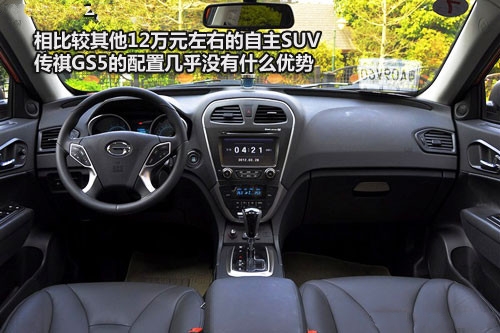 應該說相比較其他12萬元左右的自主SUV,傳祺GS5的配置幾乎沒有什么優(yōu)勢,除了配備了自動空調(diào)、后排出風口等幾處亮點之外,大部分配置都要落后于其他同價位的車型?赡苡腥藭f這樣比較不太合理,畢竟發(fā)動機等方面也有所區(qū)別,但是要看到除了中華V5配備的1.6升發(fā)動機之外,另外兩款車的發(fā)動機還要強于傳祺GS5。