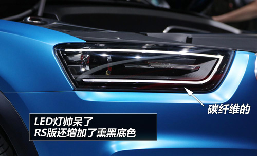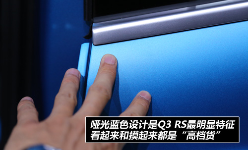 RS的Q3采用了扎眼的藍(lán)色啞光車漆,你不用糾結(jié)什么是啞光,當(dāng)你看到和摸到后的一剎那應(yīng)該能明白它一定是高檔貨。
