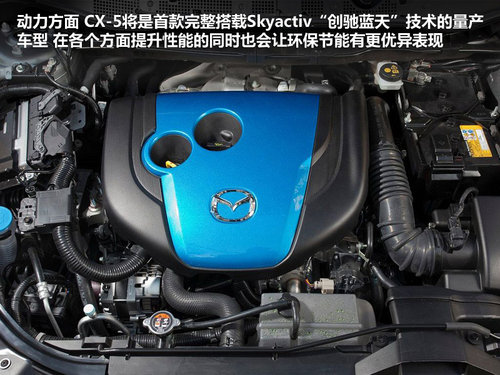 動力方面,是CX-5最大的亮點所在,該車將是首款完整搭載Skyactiv,也就是中文名為“創(chuàng)馳藍天”技術(shù)的量產(chǎn)車型,包括skyactiv系列發(fā)動機、手動自動變速箱、底盤車身在內(nèi)的整套技術(shù),在各個方面提升性能的同時也會讓環(huán)保節(jié)能有更優(yōu)異表現(xiàn)。