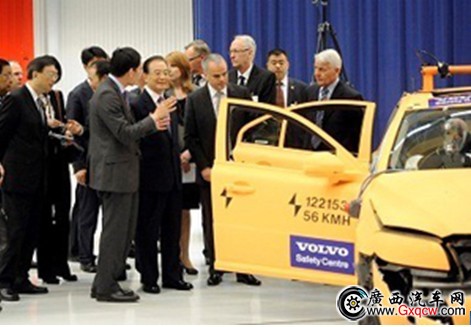 溫家寶總理上午8點30分來到沃爾沃汽車安全研究中心,觀看了汽車碰撞試驗;之后,他來到汽車制造工廠的總裝車間,與正在工作的沃爾沃工人親切交談。他特別對沃爾沃汽車領(lǐng)先全球的汽車車內(nèi)空氣質(zhì)量體系表示贊賞,提議中國汽車企業(yè)加強與沃爾沃的技術(shù)交流與合作,提升中國汽車企業(yè)在這一前沿科技領(lǐng)域的科技創(chuàng)新水平。