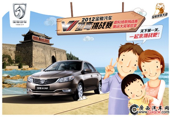 真實賽道,虛擬場景挑戰(zhàn)賽,黃金海岸風(fēng)景試駕,最終決戰(zhàn)“天下第一關(guān)”山海關(guān),贏倫敦奧運伙伴之旅!感受雙優(yōu)動力組合的非凡駕控,“國際品質(zhì)新家轎”寶駿630的獨特魅力。
