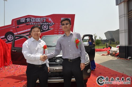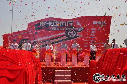 中國(guó)皮卡網(wǎng)運(yùn)營(yíng)總監(jiān)韓君善先生與揚(yáng)州江淮輕型汽車有限公司營(yíng)銷公司副總經(jīng)理賈海波先生分別為皮卡中國(guó)行福清站活動(dòng)致辭,并和一汽通用領(lǐng)導(dǎo)一起分別為江淮瑞鈴V3皮卡和一汽通用坤程皮卡揭幕。在接下來兩天的活動(dòng)中,長(zhǎng)城、江鈴、福田、一汽通用、海格、江淮等國(guó)內(nèi)主流品牌全力出擊,風(fēng)駿、寶典、薩普、坤程、御駿、瑞鈴等實(shí)力車型強(qiáng)勢(shì)登場(chǎng)。福清市民將本站活動(dòng)親切地稱為“福清地區(qū)最特別的汽車盛宴”,福清電視臺(tái)也對(duì)兩天的活動(dòng)進(jìn)行了特別報(bào)道。