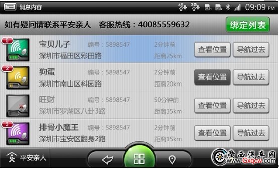 平安親人通過采用GPS與手機通訊技術相結合的個人追蹤器產品為私家車主提供對孩子、老人、愛犬的追蹤服務,用戶可以通過裝有車友互聯智能導航系統的機器實時看到他們的位置并動態(tài)導航至親人所在地點,全天候保護親人安全。