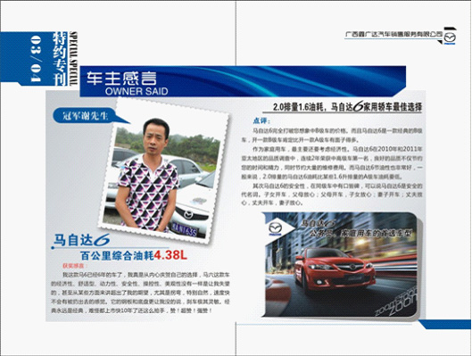 主營業(yè)務(wù):馬自達(dá)6、睿翼、原裝進(jìn)口MPV馬自達(dá)5、馬自達(dá)8,進(jìn)口ATENZA、原裝進(jìn)口SUVCX-9、原裝進(jìn)口雙座敞篷跑車馬自達(dá)MX-5、SUV馬自達(dá)CX-7,