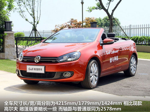 新一代高爾夫敞篷轎版為2門設(shè)計(jì),與硬頂高爾夫車型具有相同外觀風(fēng)格及尺寸,但又極具個(gè)性,并更富運(yùn)動(dòng)性。而如果你第一眼看到它時(shí),你有可能會(huì)感覺它很像大眾家族敞篷的代言人EOS。全車尺寸長/寬/高分別為4215mm/1779mm/1424mm,相比現(xiàn)款高爾夫,敞篷版要略長一些。而軸距與普通版同為2578mm,乘坐感受肯定也相同。