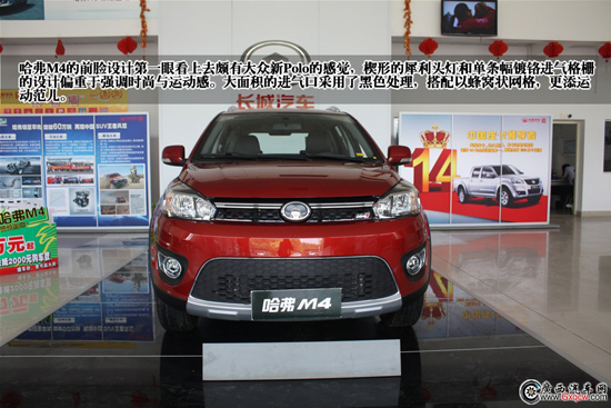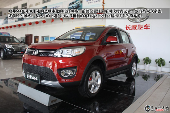 哈弗M4是長城哈弗系列中的全新跨界小型車,其出自炫麗平臺。哈弗M4那帶有熏黑燈眉的犀利燈組、狹長的格柵、大尺寸的進氣口、銀色的車底護板以及黑色的裙邊等細節(jié)讓新車看起來非常兇悍。哈弗M4相比長城炫麗更具時尚感,與當下的主流設(shè)計保持一致,車輛的后門窗和C柱的設(shè)計依然保持了絢麗的設(shè)計思路。無論是內(nèi)外飾都給我們一種不落于合資的視覺感受。而在細節(jié)設(shè)計上,比如前進氣格柵右側(cè)的車型銘牌和車輛四個紅色的剎車鉗,都讓整車透露出更加個性化的氣息。