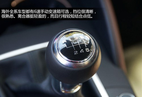 手動(dòng)變速箱的換擋感覺很熟悉,在城市中基本上用不到6擋,這第6個(gè)擋位只是為了一個(gè)目的:省油。掛上6擋你會(huì)發(fā)現(xiàn)即使上了高速公路轉(zhuǎn)速也就在2000轉(zhuǎn)左右。離合器的結(jié)合點(diǎn)不高,行程也比較短,對手動(dòng)擋不是很精通的朋友也可以嘗試著做出快速換擋動(dòng)作,擋位行程較短,有吸入感,經(jīng)典的德系變速箱的感覺。但是有一點(diǎn)很奇怪,就是每次停車后釋放手剎起步總是容易熄火,要稍稍多踩一點(diǎn)油門配合好離合器才能正常起步,不知道是不是autohold功能的作用,有一些惱人。