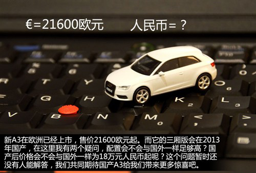 至于價(jià)格嘛,新A3在歐洲的起步售價(jià)為2.16萬歐元,折合人民幣18萬元起,但是這個(gè)價(jià)格會(huì)在國產(chǎn)后保持嗎?現(xiàn)在還沒有人能告訴我們這個(gè)問題,不過可以肯定的是,如果想要銷售數(shù)量,再好的配置也抵不上一個(gè)好價(jià)格,國產(chǎn)車不會(huì)像海外那樣選裝銷售,但是如果這些配置都加上的話價(jià)格勢必就沒有競爭優(yōu)勢了,畢竟現(xiàn)在純進(jìn)口的寶馬1系只賣24.2萬元起,如果A3賣20多萬的話競爭優(yōu)勢就不大了,畢竟是個(gè)緊湊型車。但如果真的賣到18萬元,我想本文章中提到的很多配置國人都看不到了。當(dāng)然這這只是我的個(gè)人猜測,事實(shí)怎樣,讓我們共同期待奧迪A3的到來吧。