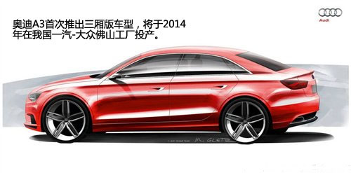 奧迪A3的第三代車型以進(jìn)口方式在國內(nèi)正式銷售,讓國人熟悉了A3這款車,但因售價(jià)和定位問題在國內(nèi)銷量并不理想。不過現(xiàn)在全新的A3來了,而且對于中國市場來說,是有備而來的。新奧迪A3預(yù)計(jì)在2014年國產(chǎn),投產(chǎn)于一汽-大眾佛山工廠,車型是非常迎合國人口味的三廂版。