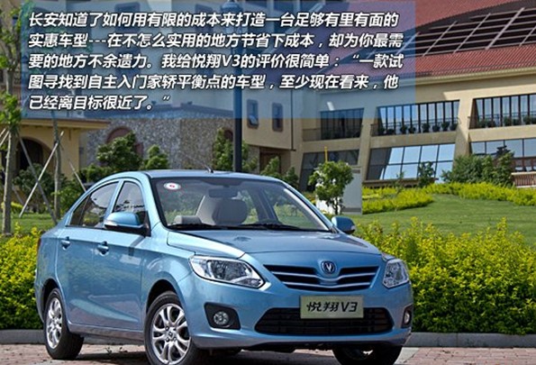 后記:本想找出一些亮點(diǎn),對(duì)悅翔V3做出個(gè)總結(jié),但是我發(fā)現(xiàn)她各個(gè)方面都表現(xiàn)的還不錯(cuò),但又不夠突出。如果非要我說一些,那么從第一眼就讓人看著舒服的外觀以及綜合實(shí)力不錯(cuò)的動(dòng)力及底盤總成算是給了我一些意外之喜。我想,在大家都做好成熟的可靠性和極高的性價(jià)比之后,這些因素將會(huì)成為未來自主品牌之間競(jìng)爭(zhēng)的重點(diǎn);而對(duì)于消費(fèi)者,同等價(jià)格,誰(shuí)不希望自己的車看起來更舒服一點(diǎn),開起來更輕松一點(diǎn)呢,長(zhǎng)安知道了如何用有限的成本來打造一臺(tái)足夠有里有面的實(shí)惠車型---在不怎么實(shí)用的地方節(jié)省下成本,卻為你最需要的地方不余遺力。我給悅翔V3的評(píng)價(jià)很簡(jiǎn)單:“一款試圖尋找到自主入門家轎平衡點(diǎn)的車型,至少現(xiàn)在看來,他已經(jīng)離目標(biāo)很近了。”