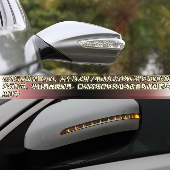 在外后視鏡配置方面,兩車(chē)均采用了電動(dòng)方式對(duì)外后視鏡鏡面角度進(jìn)行調(diào)節(jié),并且后視鏡加熱、自動(dòng)防炫目以及電動(dòng)折疊功能也都應(yīng)用其中。這些配置的應(yīng)用為兩款車(chē)型在雨雪天氣行車(chē)、夜間行車(chē)以及駐車(chē)狀態(tài)下的行車(chē)安全提供了充分的安全保證。