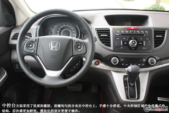 新CR-V內(nèi)飾設(shè)計(jì)保持本田車(chē)型一貫的居家式風(fēng)格,內(nèi)飾顏色有黑色和淺灰色供選擇。值得一提的是新CR-V裝配ECON智能化綠色節(jié)能輔助系統(tǒng),通過(guò)儀表板左側(cè)的綠色按鈕,駕駛者可實(shí)現(xiàn)整車(chē)范圍內(nèi)的節(jié)能駕駛。
