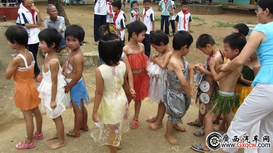 學(xué)校的韋老師介紹說(shuō):“我們從小教育孩子們要愛(ài)護(hù)環(huán)境,要環(huán)保,這次用廢舊物品做成的衣服,都是老師們帶著小朋友一起做的,既教會(huì)了他們知識(shí),也讓他們?cè)趧?dòng)手中獲得了樂(lè)趣!
