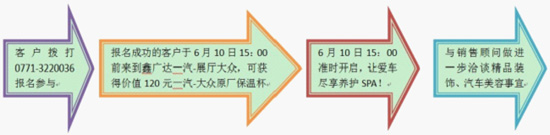 第一步:即日起至6月10日,通過撥打0771-3220036成功報名,且在活動當天到達展廳參與活動的客戶,即可獲得價值120元一汽-大眾原廠保溫杯一個。