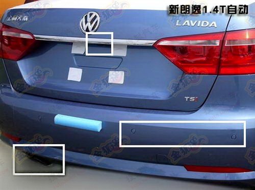 同樣,從車(chē)尾部分的細(xì)節(jié)也能區(qū)分高低不同配置的版本,高配版車(chē)型尾部的雙出排氣管,以及尾部的“TSI”標(biāo)牌都表明了其更加強(qiáng)勁的1.4TSI動(dòng)力,另外比低配版車(chē)型多了牌照框上方的后視攝像頭和后保險(xiǎn)杠上的四個(gè)雷達(dá)探頭。
