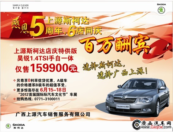 6月,上源斯柯達(dá)“感恩5周年,6店同慶,百萬(wàn)酬賓”,好禮送不停!