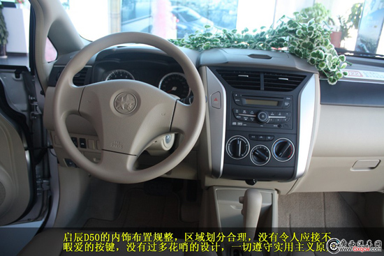 D50在內飾設計上也采用了頤達的設計理念,同樣的家居風格設計體現(xiàn)了這款車家用車的定位。同時通過對內飾按鍵布局及一些細節(jié)的重新設計,使D50的內飾看起來更加溫馨,操作上也比較便利。