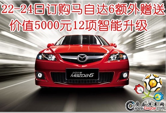 3、活動(dòng)期間訂、購(gòu)馬自達(dá)6可額外贈(zèng)送價(jià)值5000元的12項(xiàng)智能升級(jí)。數(shù)量有限先到先得;
