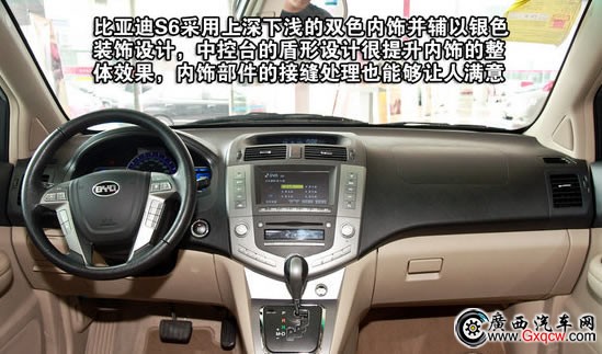 比亞迪S6的內(nèi)飾同樣采用完全自主的設(shè)計(jì),以家居化的雙色風(fēng)格為主配以諸多的銀色裝飾,目的是為了讓更多的年輕用戶來選擇它,而你進(jìn)入車內(nèi)后的最大感覺就是電子化配置的豐富程度。采用兩塊顯示屏的儀表盤、布滿按鍵的多功能方向盤與集成了衛(wèi)星導(dǎo)航、數(shù)字電視、藍(lán)牙電話、倒車影像等功能的中控臺大屏幕都會(huì)令你感覺到這款車物有所值。