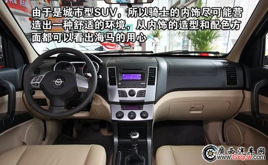 海馬騎士的內(nèi)飾設(shè)計同樣讓你感覺硬朗,選材用料也都比較用心。雖然配色為通俗的家用風(fēng)格,但三幅方向盤、炮筒儀表卻又帶給你一些運動的激情。分區(qū)清晰地中控臺上手難度幾乎為零,各功能都有條不紊的排列其上。配置方面,除了剛才所說,海馬騎士高配置車型還提供后視鏡電動折疊、衛(wèi)星導(dǎo)航、ESP、胎壓監(jiān)測等舒適與便利配置,其中對于安全方面的重視相信是目前國人都比較關(guān)心的。