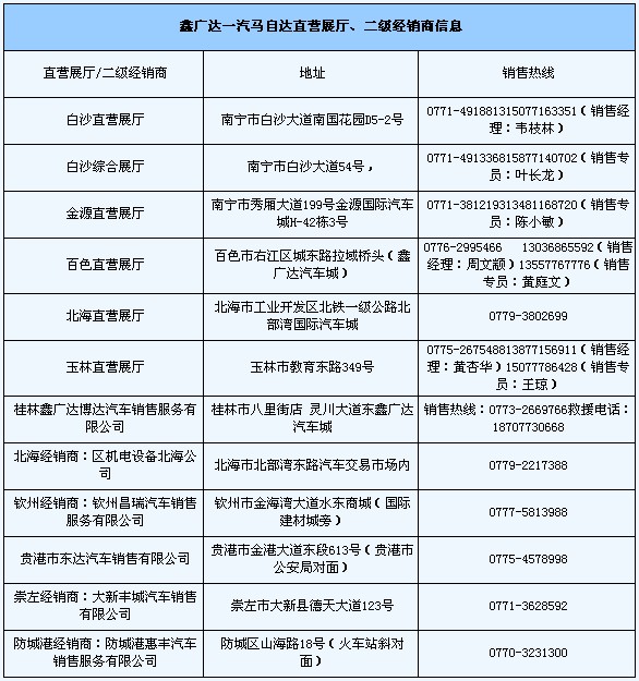 一汽馬自達廣西經(jīng)銷商:廣西鑫廣達汽車銷售服務(wù)有限公司